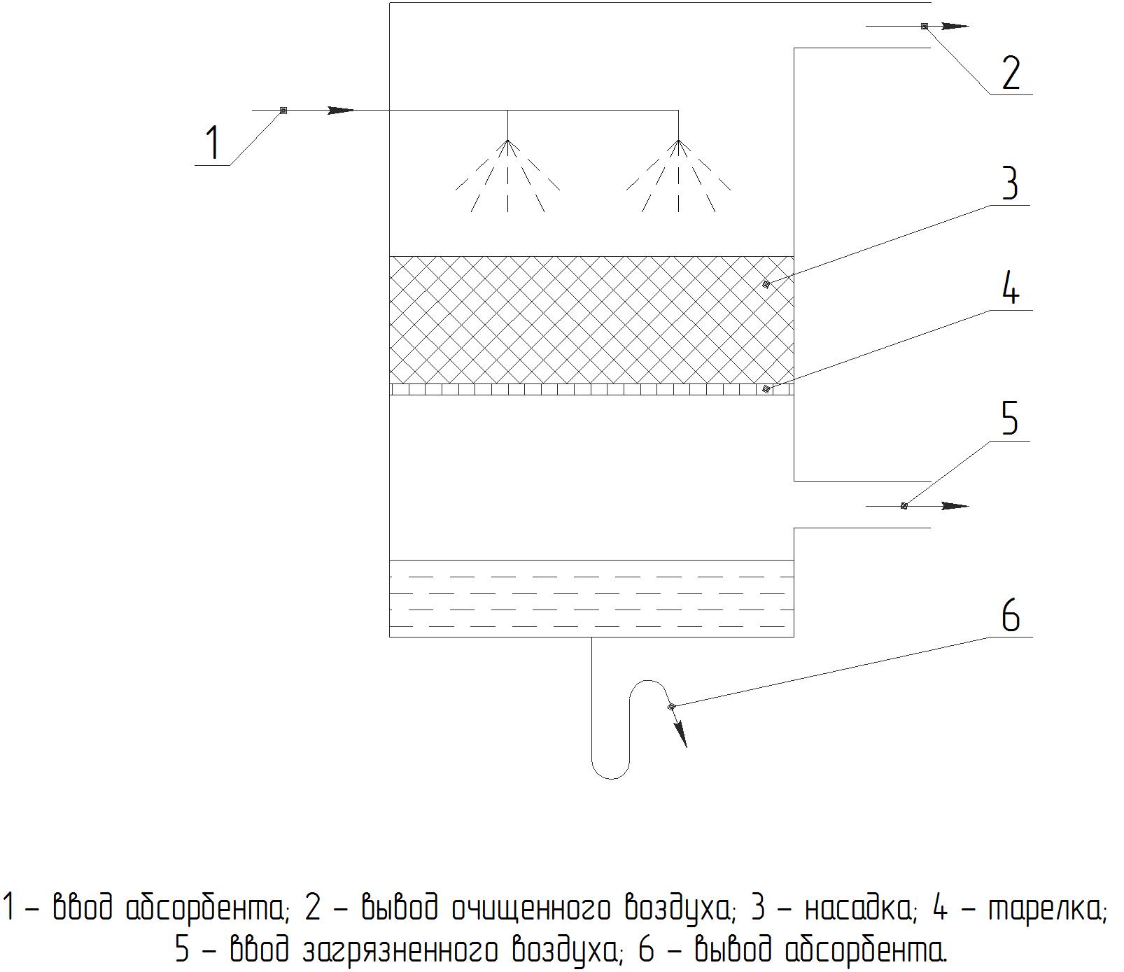 Принципиальная схема насадочного поглотителя газов и ЛОС