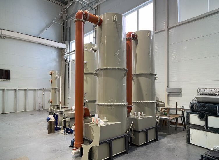 | Абсорбционная колонна | Вертикальный корпус из химически стойкого материала (нержавеющая сталь, полипропилен, стеклопластик или титан – выбор определяется средой заказчика) |